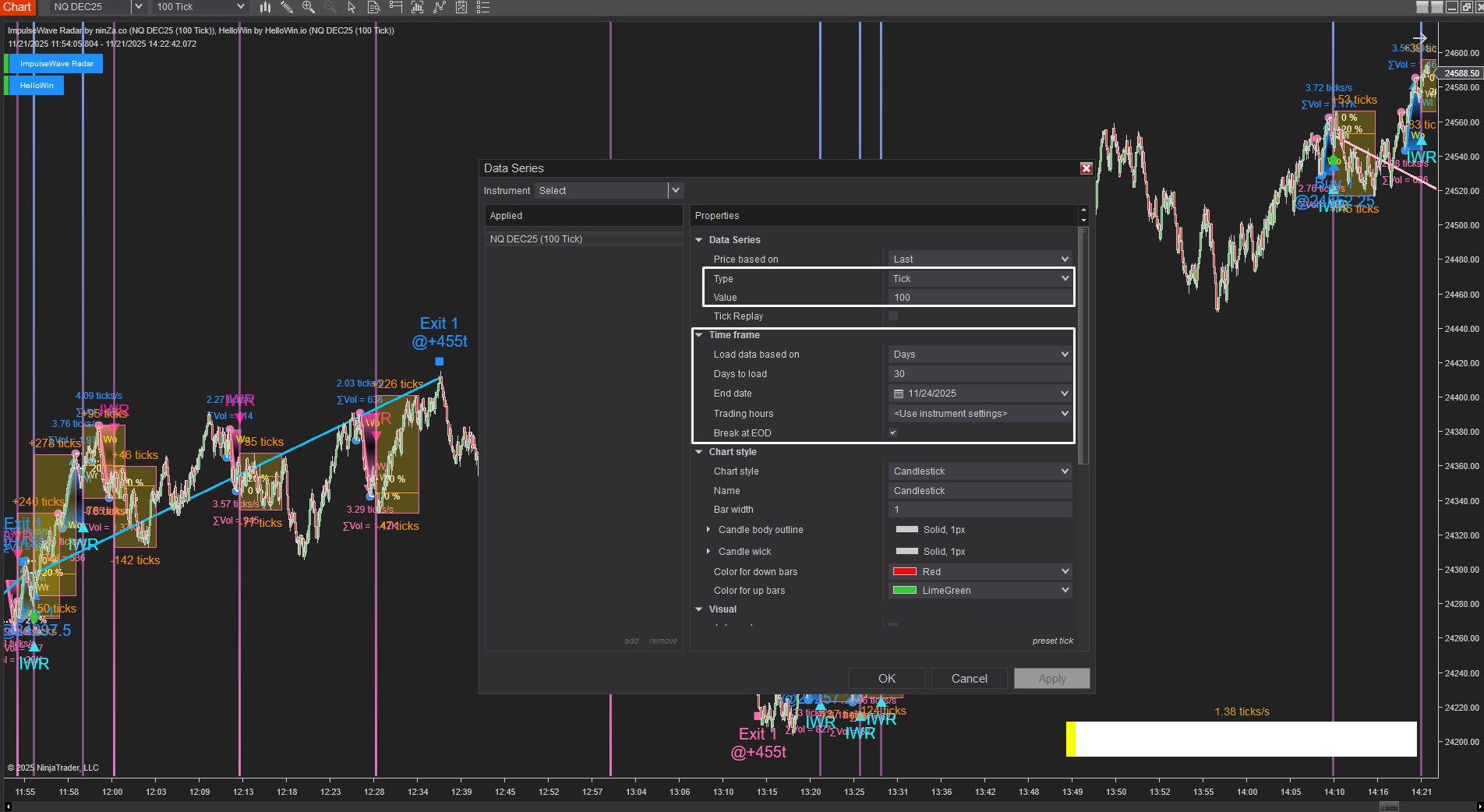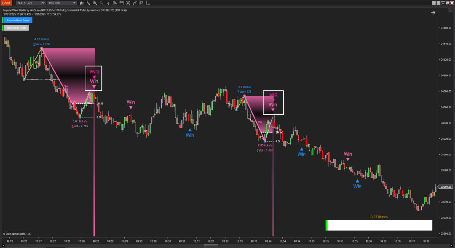 Check out the latest 1-month & 2-month backtest results of ImpulseWave Radar on the 100-tick NQ chart: