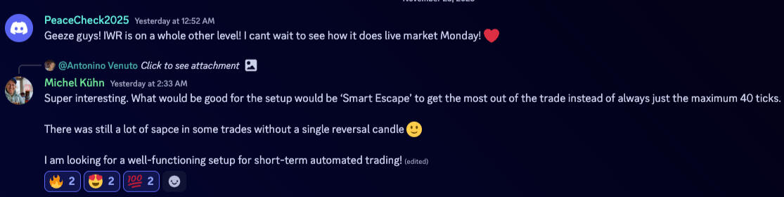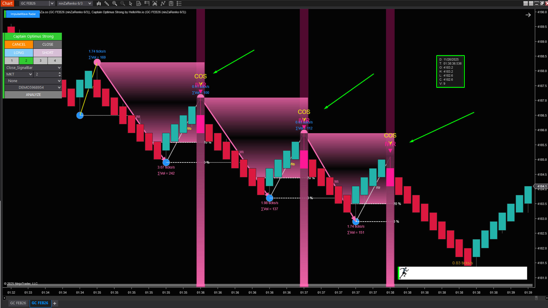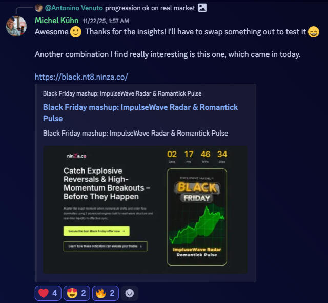 The optimal indicator for catching reversals at the exact turning point. Romantick Pulse reads per-candle dominance to identify where institutions are stepping in – giving you ultra-tight stop placements and explosive entry timing.IMPORTANT NOTE: Indicators like Romantick Pulse typically require Tick Replay to function at full accuracy. However, ninZa.co has developed a new proprietary technology that allows this indicator to operate smoothly and efficiently – without using Tick Replay at all.