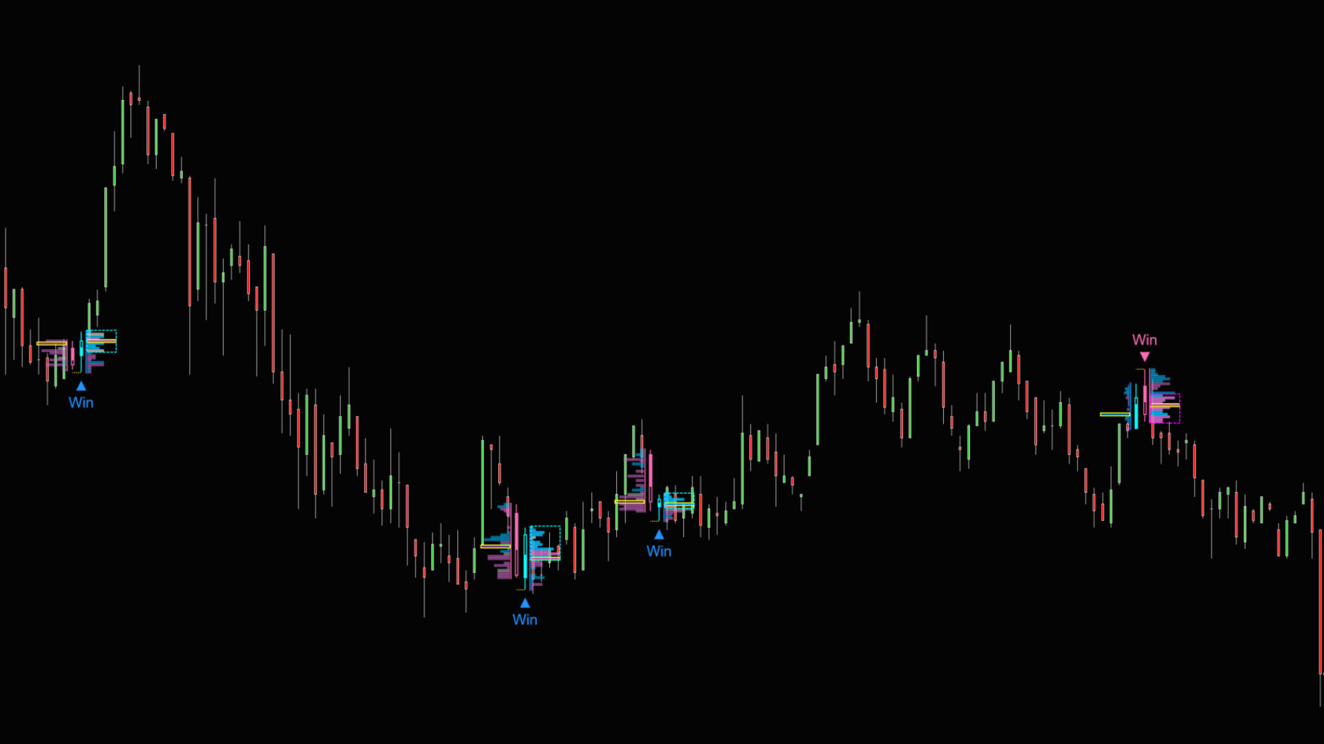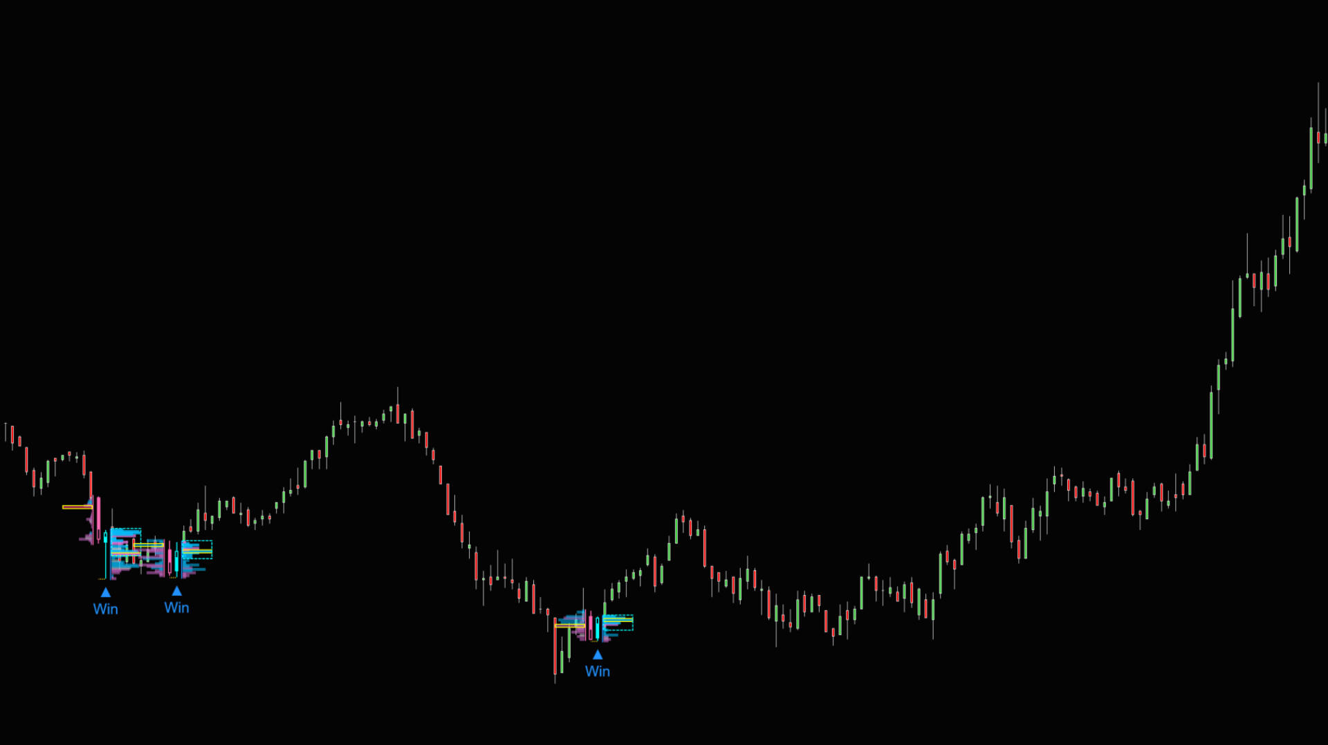 Automatically identifies the zone with highest buy/sell volume inside each candle. Shows which side truly controls price action, eliminating emotional guesswork entirely.